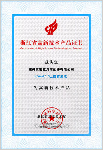 公司已先后通過IATF16949質量管理體系認證、ISO/14001環境管理體系認證和OHSAS18001職業健康安全管理體系認證。是“國家高新技術企業”“行業龍頭企業”和“全國百家優秀汽車零部件供應商”。